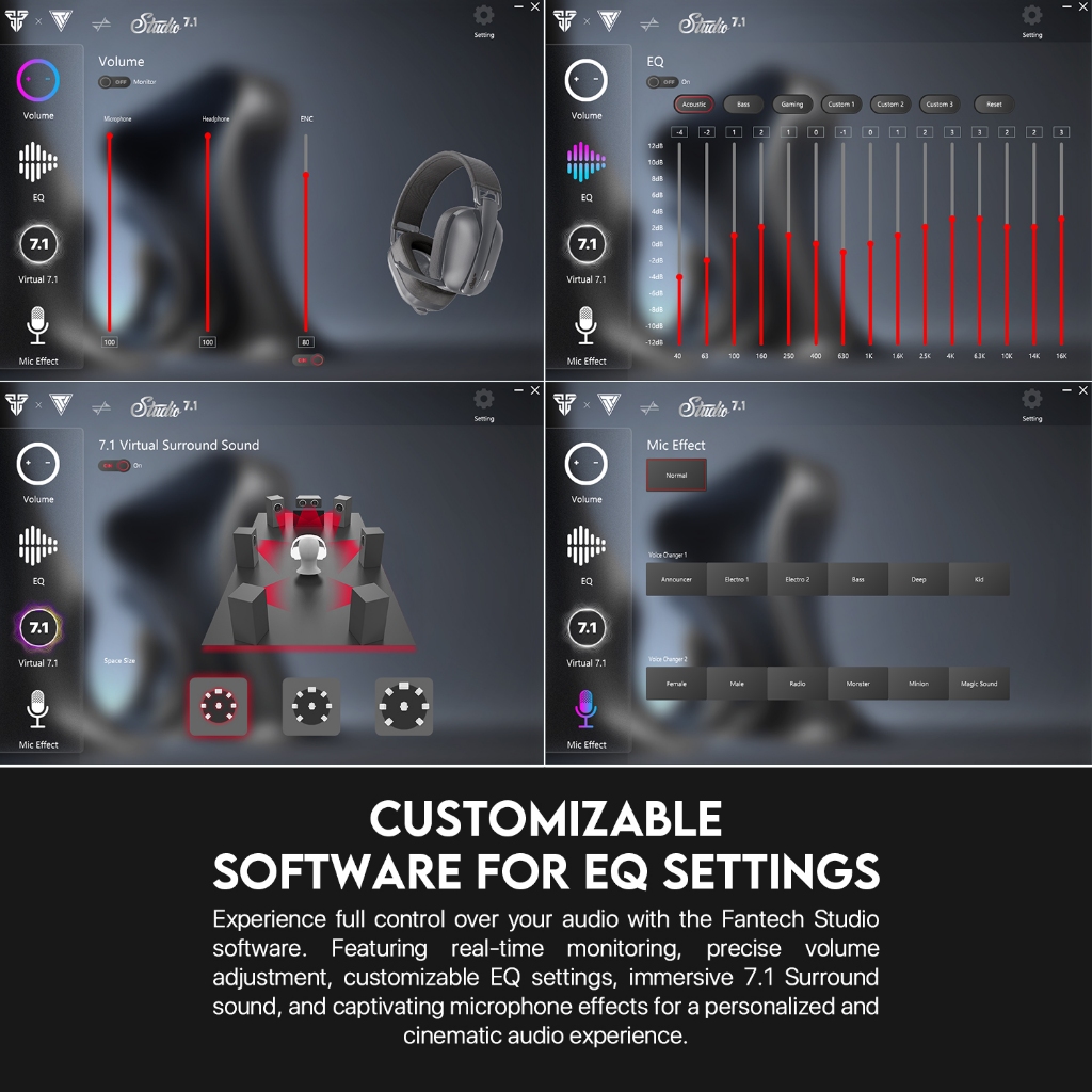 Headset gaming Fantech Studio Pro WHG03 hadir dengan suara surround virtual 7.1 dan empat pilihan mode koneksi. Bisa digunakan di PC, Android, dan iOS untuk pengalaman gaming yang maksimal.