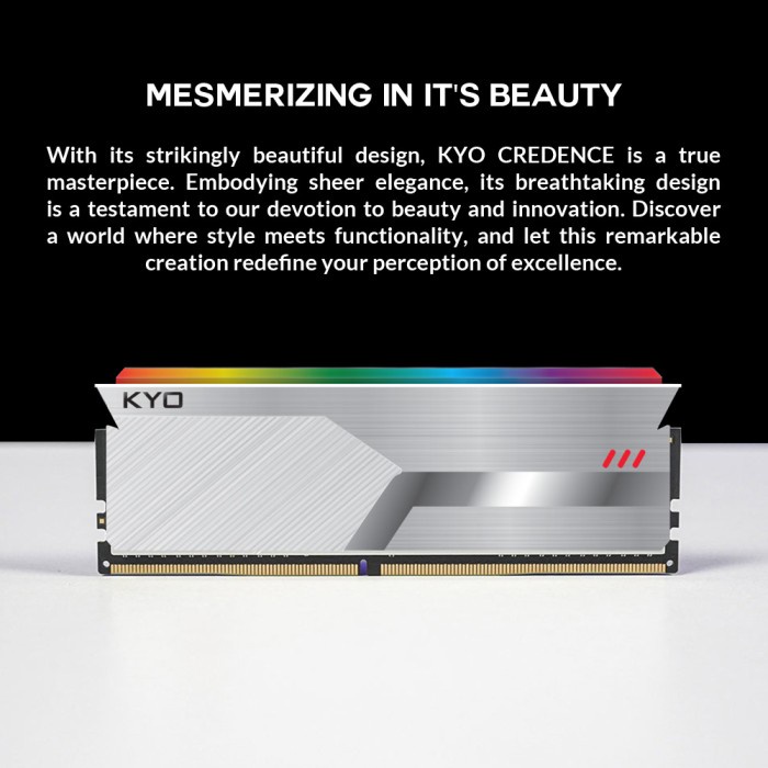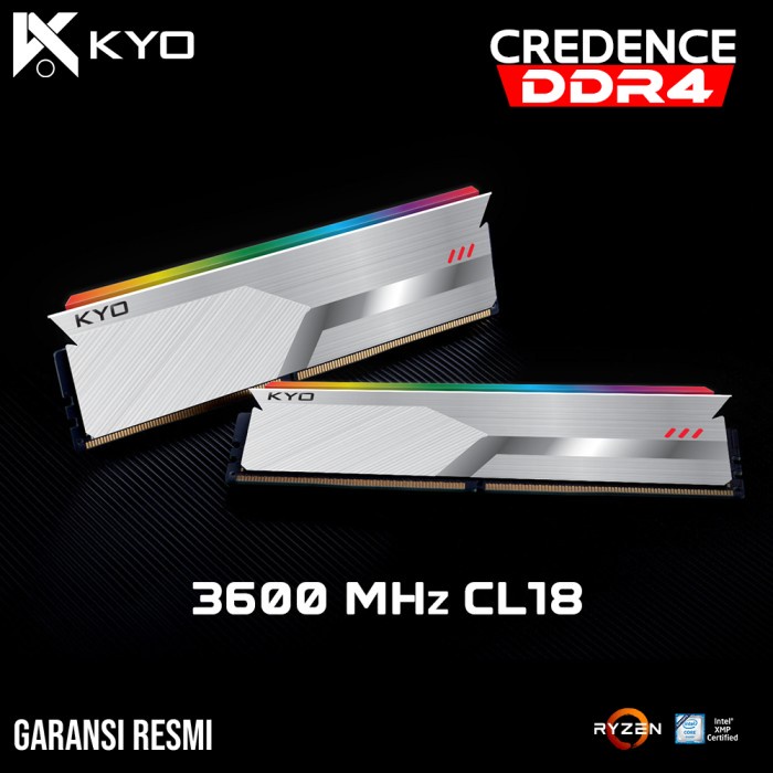 KYO CREDENCE DDR4 3600MHz 16GB (2x8GB) menawarkan performa tinggi dengan kecepatan 3600MHz, latensi SPD 18, dan kompatibilitas Intel XMP 2.0, cocok untuk kebutuhan gaming dan aplikasi berat.