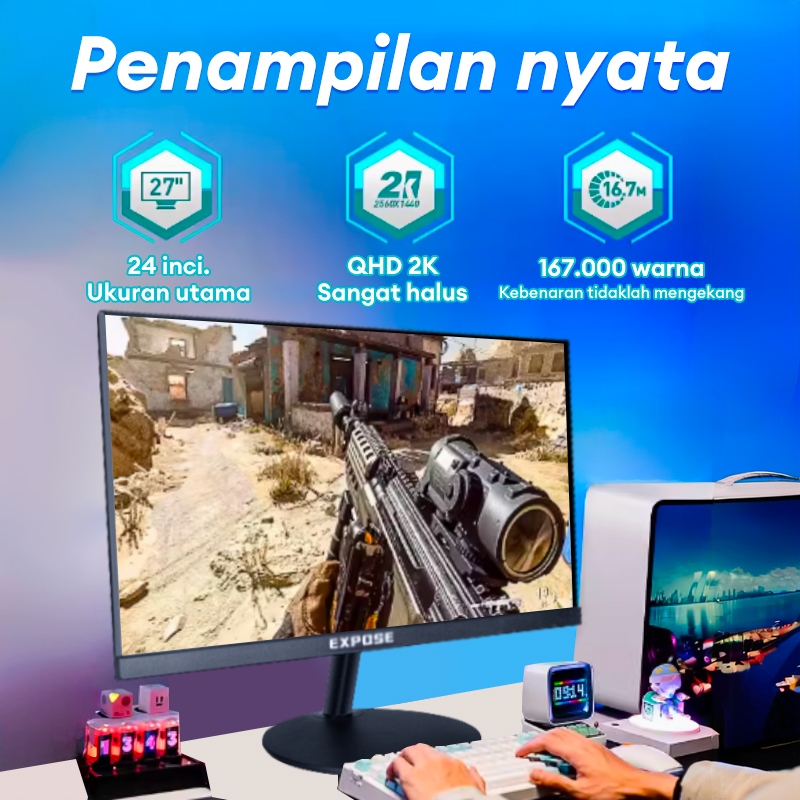 Monitor gaming ukuran 24 inch dengan panel IPS Full HD yang menghadirkan kualitas gambar lebih jernih, warna tajam, dan sudut pandang luas. Cocok banget buat kamu yang butuh tampilan maksimal untuk main game atau kerjaan harian.