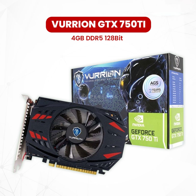VGA VURRION GTX 750TI 4GB DDR5 dengan memori 128Bit dan sistem pendingin single fan. Performa gaming optimal dengan GPU GM107, garansi resmi 2 tahun.